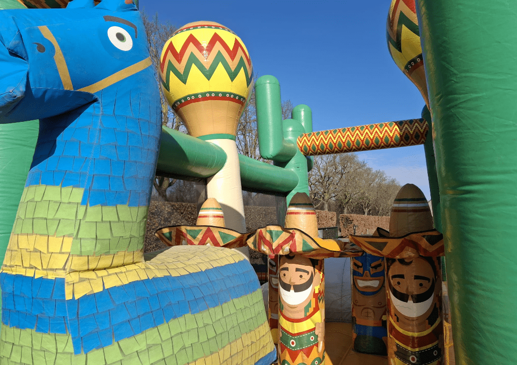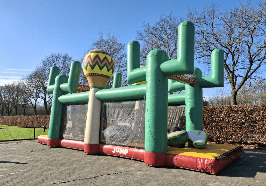 Wurm je een weg langs vrolijke Mexicaanse poppen, klim over gigantische avocado’s en zigzag tussen schattige alpaca’s. De speelse thematisering en frisse kleuren maken deze stormbaan een echte blikvanger op elk evenement.