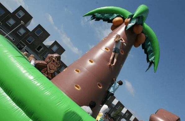 Onze blazer zorgt ervoor dat de boom haar stabiliteit behoudt ook als er meerdere mensen tegelijkertijd op klimmen. Daarnaast is er een hoge opstaande rand om ons luchtkussen heen die je beschermt wanneer je uit de boom zou vallen. Hierdoor is deze attractie geschikt voor jonge aapjes als ervaren orang-oetans! Haal de bananen als snelste naar beneden en win op deze palmboom!